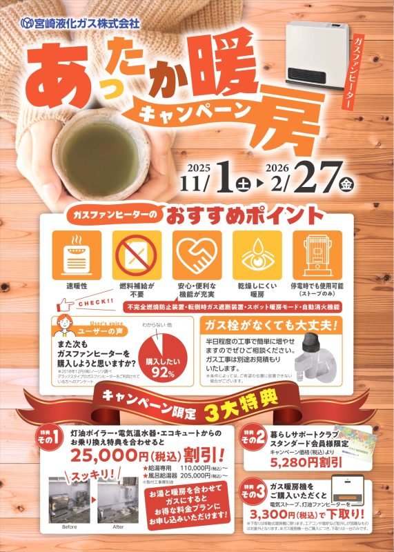 毎年ご好評いただいております「あったか暖房キャンペーン」を、今年も実施中です。