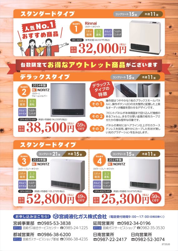燃料補給の手間なし、寒い朝もすぐに暖かい「ガスファンヒーター」を特別価格で販売いたします!!!